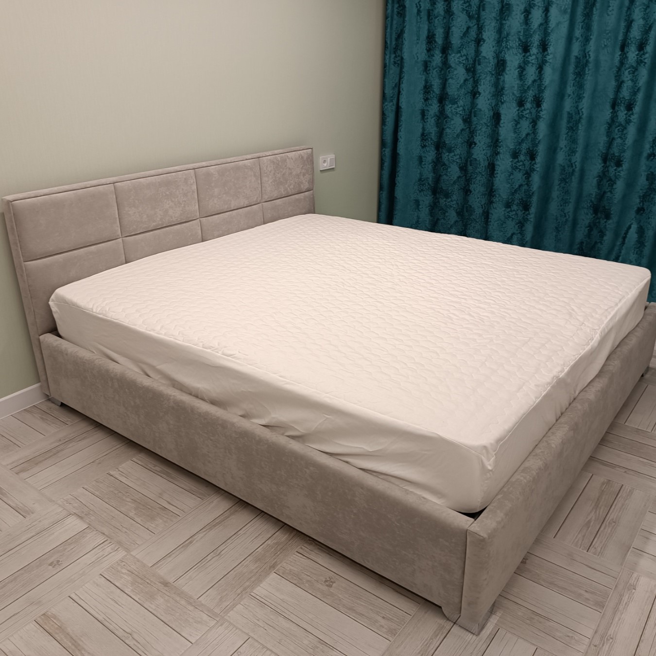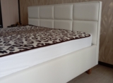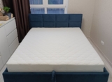 Вариант обивки и цвет, выбрала на сайте, все обговорила с менеджером. Обивка очень приятная тактильно, смотрится дорого, комфортна в обиходе. Спальное место просторное. Лаконичный дизайн вписывается в современную спальню. Пользуюсь коробом, удобно.