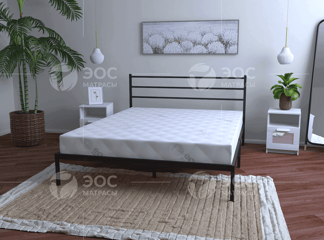 Кровать Веста с современным минималистичным дизайном идеально подойдет для лофта и интерьеров в индустриальном стиле. Визуальная легкость сочетается с высокой прочностью: все элементы кровати выполнены из металла с матовым текстурированным покрытием. Производится со встроенным металлическим основанием с ортопедическими ламелями. К ней отлично подойдет матрас ЭОС Тип 5а. Такое изделие неподвластно течению времени и послужит не одному поколению.