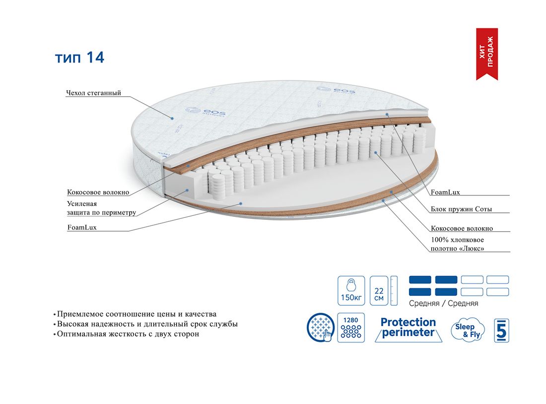 Матрас ЭОС Премьер Тип 14 круглый