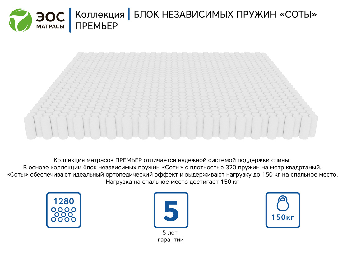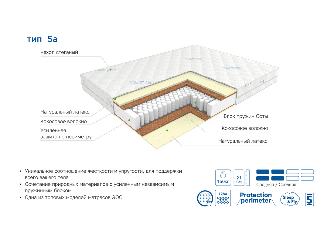 Матрас EOS Премьер 5а – это уникальное соотношение жесткости и упругости для поддержки всего вашего тела.