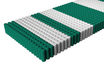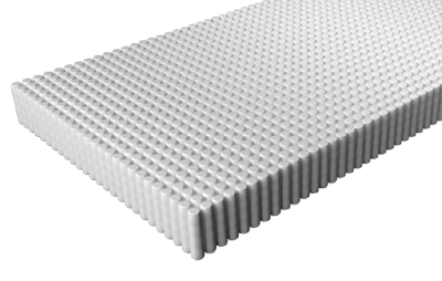 В пружинном блоке, усовершенствованное расположение пружин в виде пчелиных сот, позволяет увеличить плотность пружин до 320 пр/м2. Благодаря этому матрасы обладают исключительной устойчивостью к повышенным нагрузкам на протяжении длительного времени.