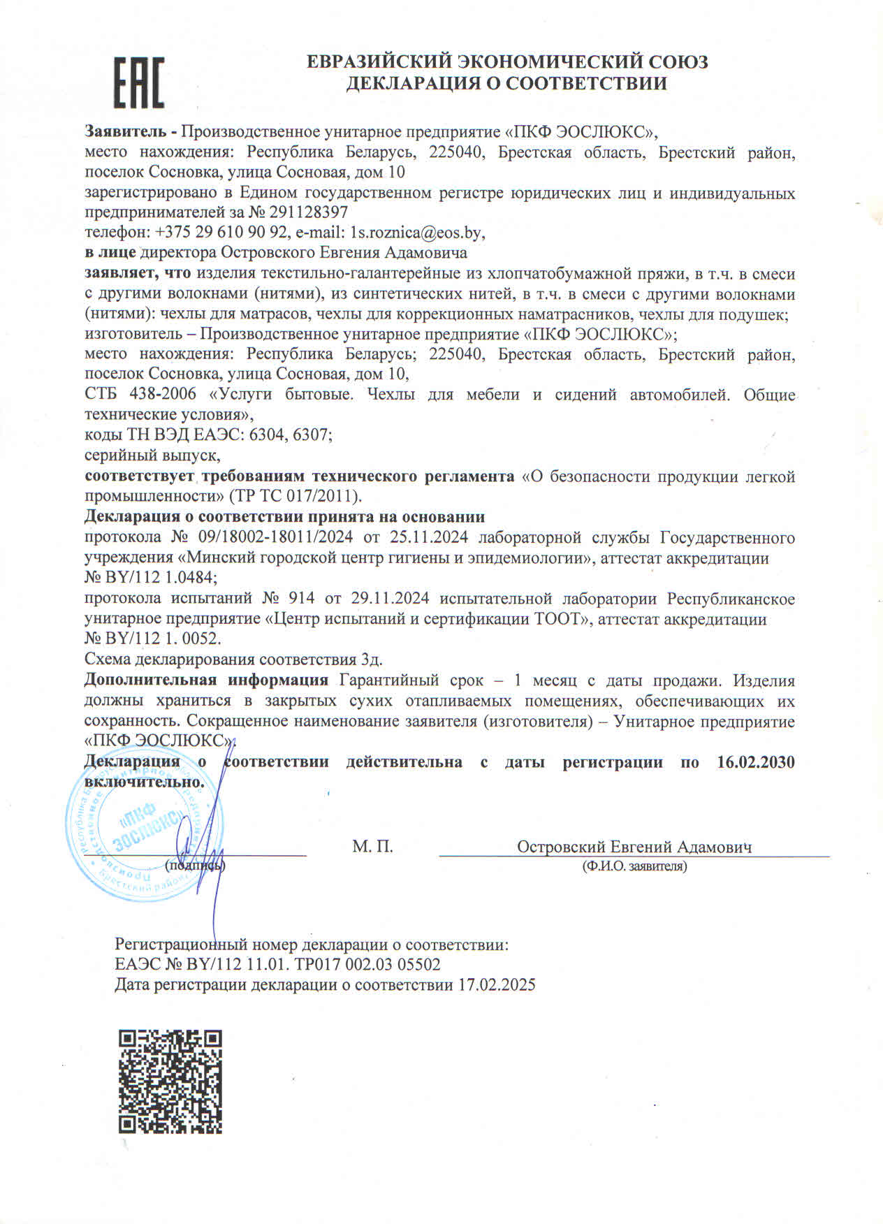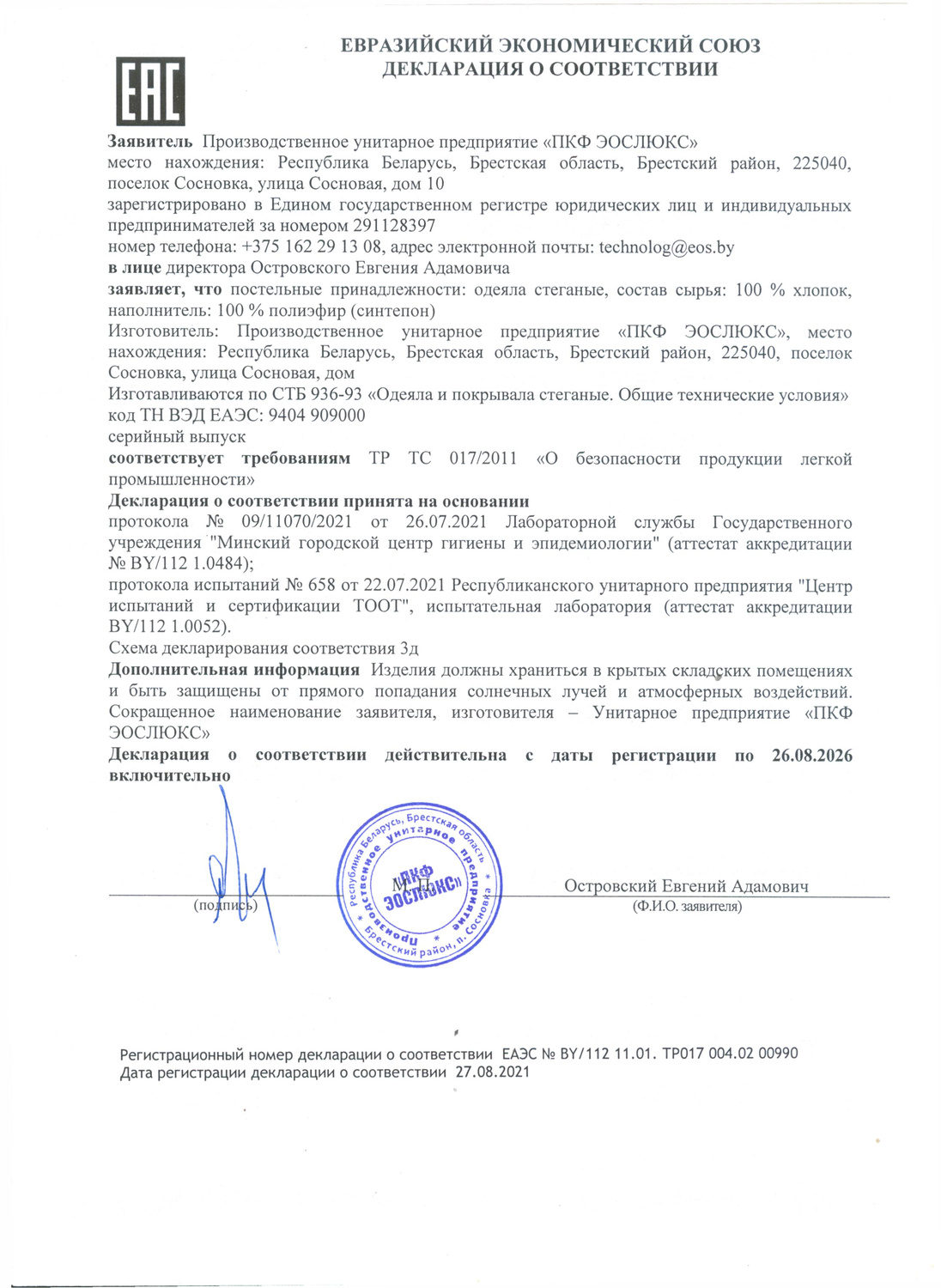Сертификаты и декларации на выпускаемую продукцию и соответствия требованиям Таможенного союза / Евразийского экономического союза (EAC) и ГОСТ Республики Беларусь.