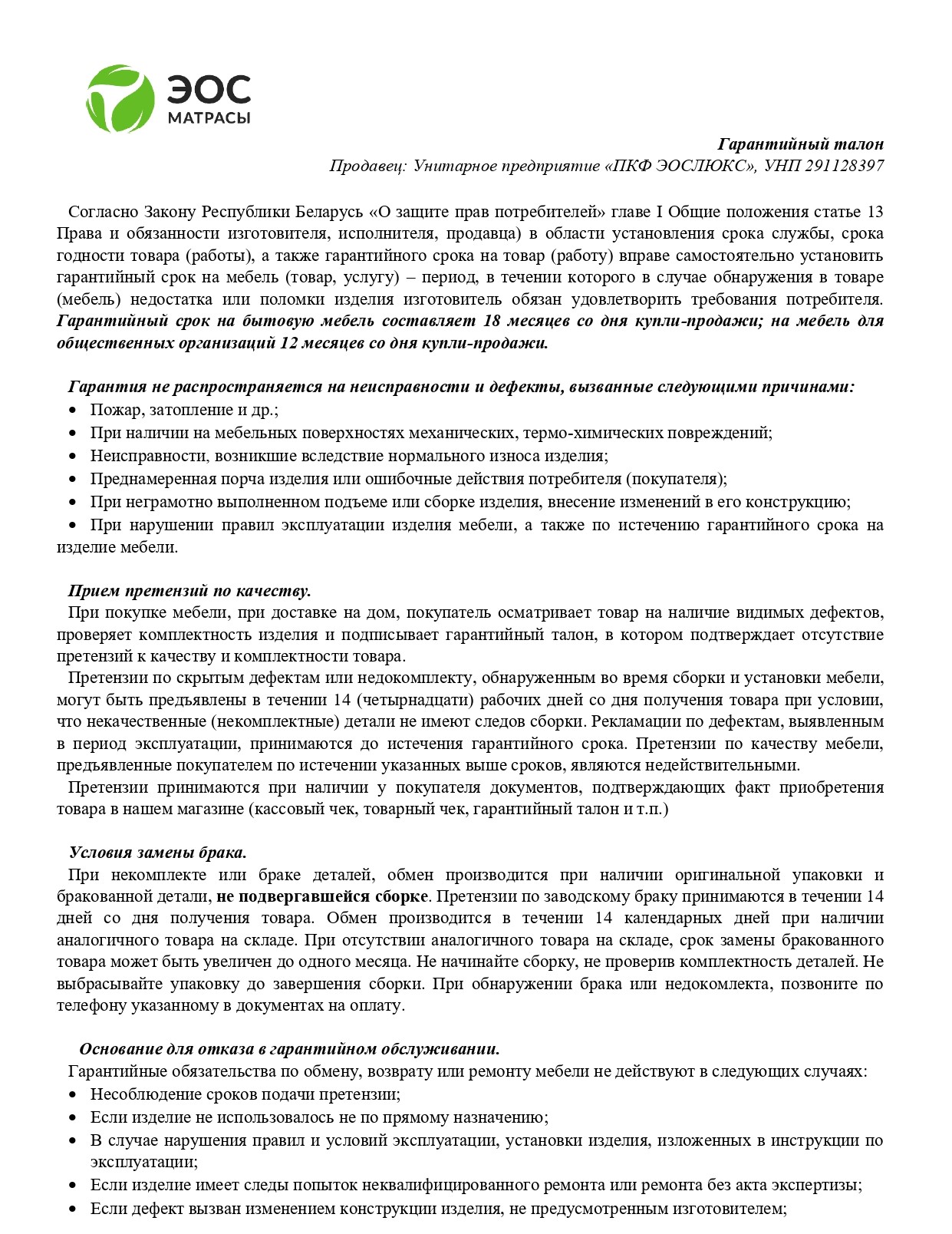 Главная > Условия гарантии